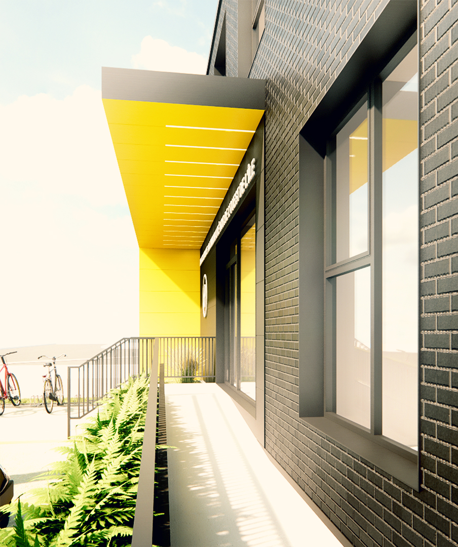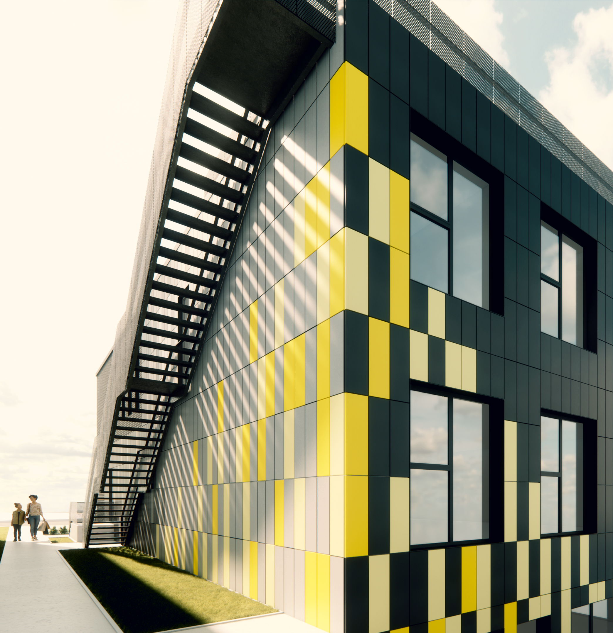 La force du WIBCA réside dans l'optimisation de son programme. Sa forme simple et efficace en est le reflet, et ses matériaux sobres mettent en valeur l'entrée principale et l'accès à la garderie.