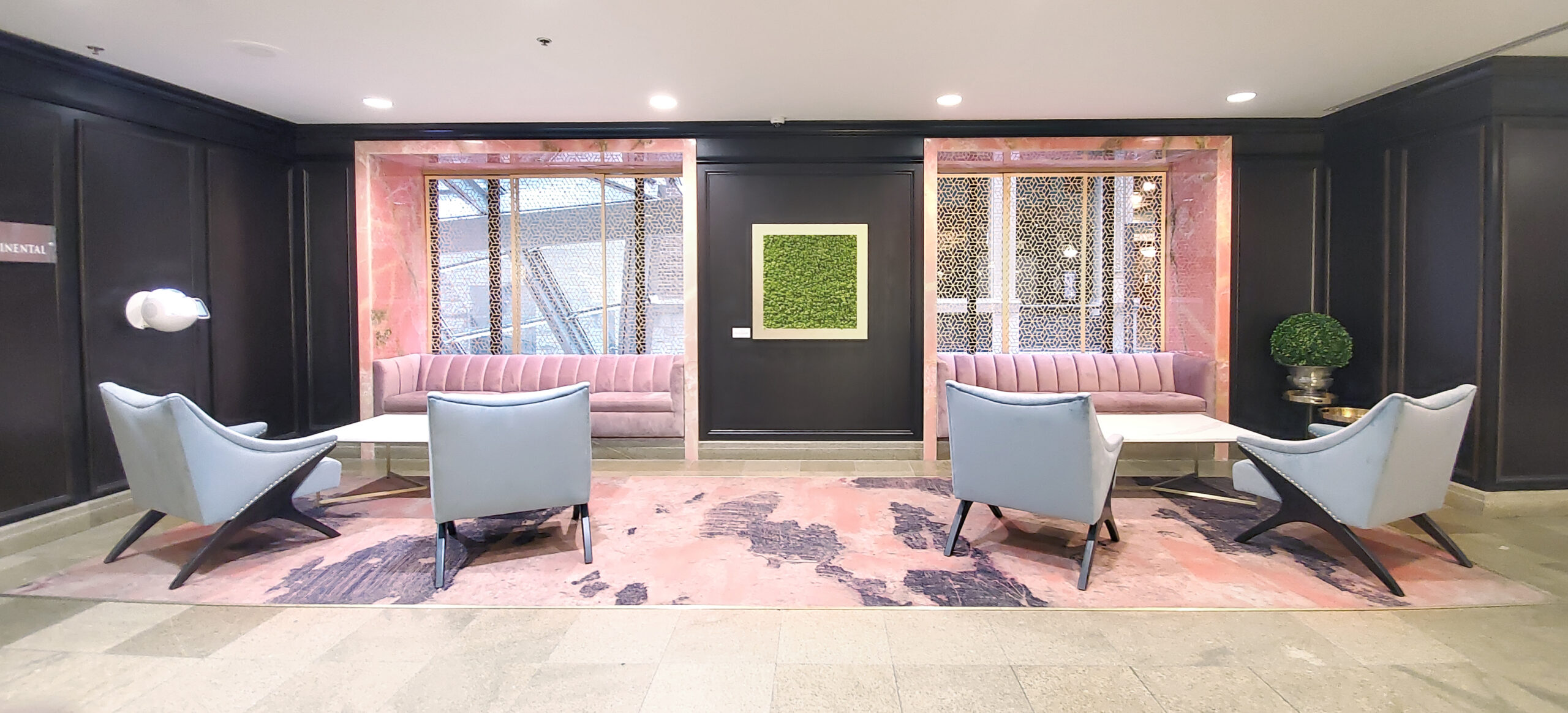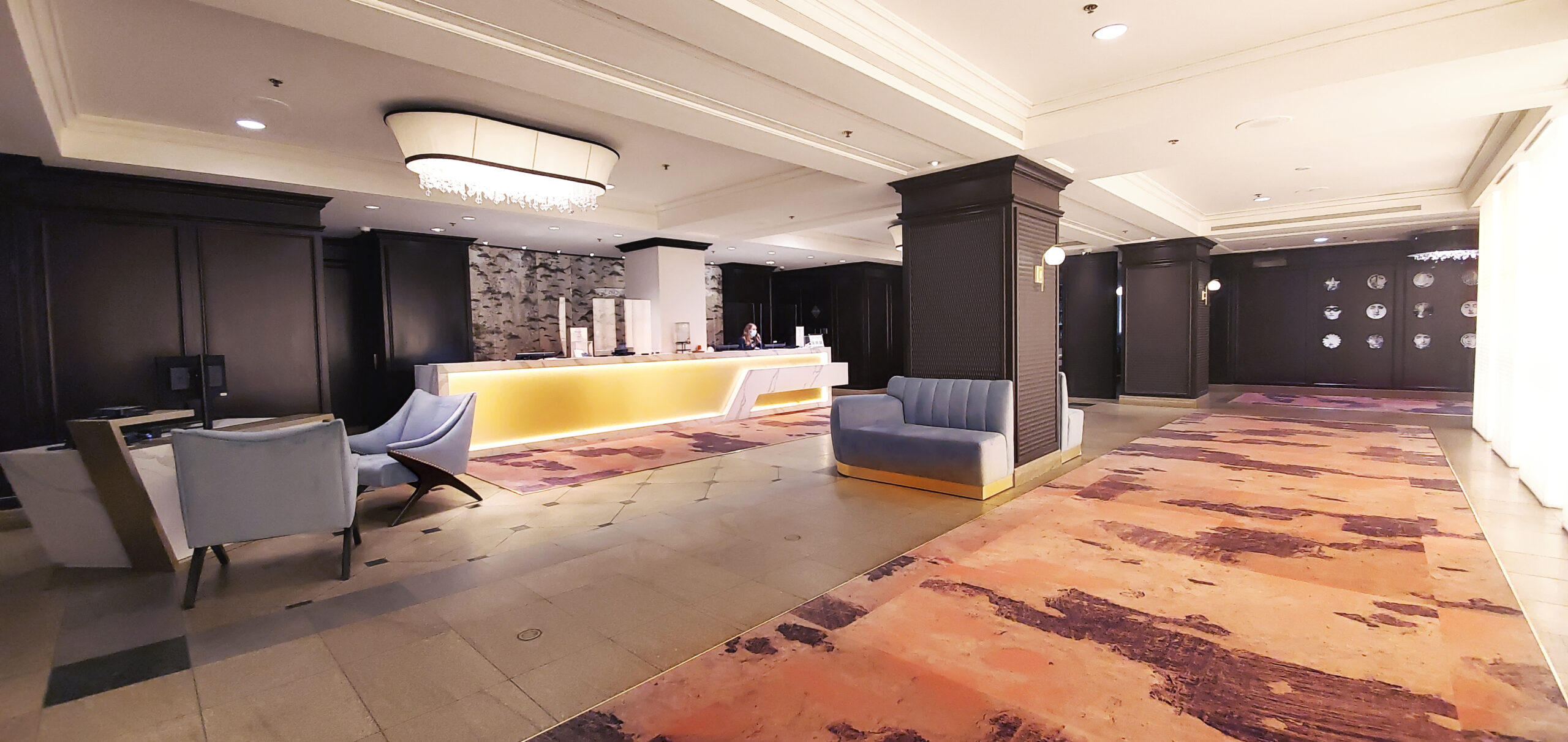 Mettre aux gouts du jour un lobby hôtelier avec du mobilier sur mesure et un jeu de contraste entre classique et contemporain.